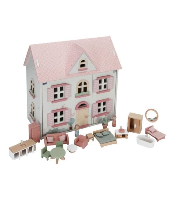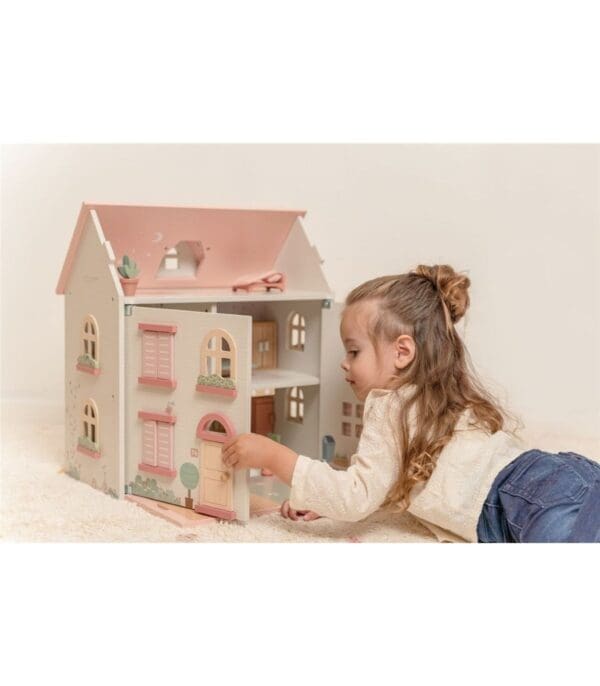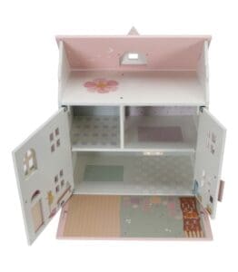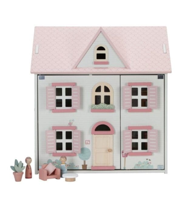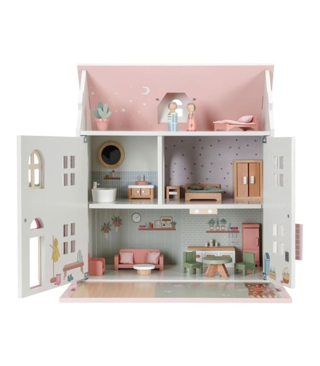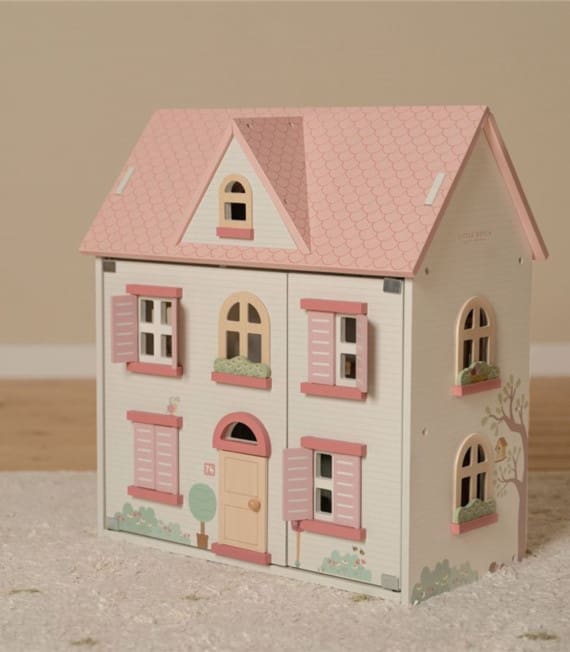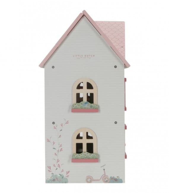 Little Dutch kućica za lutke pružit će sate maštovite igre. Izrađena je od FSC drva u toplim tonovima s drvenim namještajem. Kućica za lutke ima dva kata i tri sobe, svaka s prekrasnim “tapetama”. Odvojena tavanska soba ispod krova koja se otvara. Krov se može poduprijeti ili pretvoriti u vrt. Kapci na kući se otvaraju i zatvaraju.