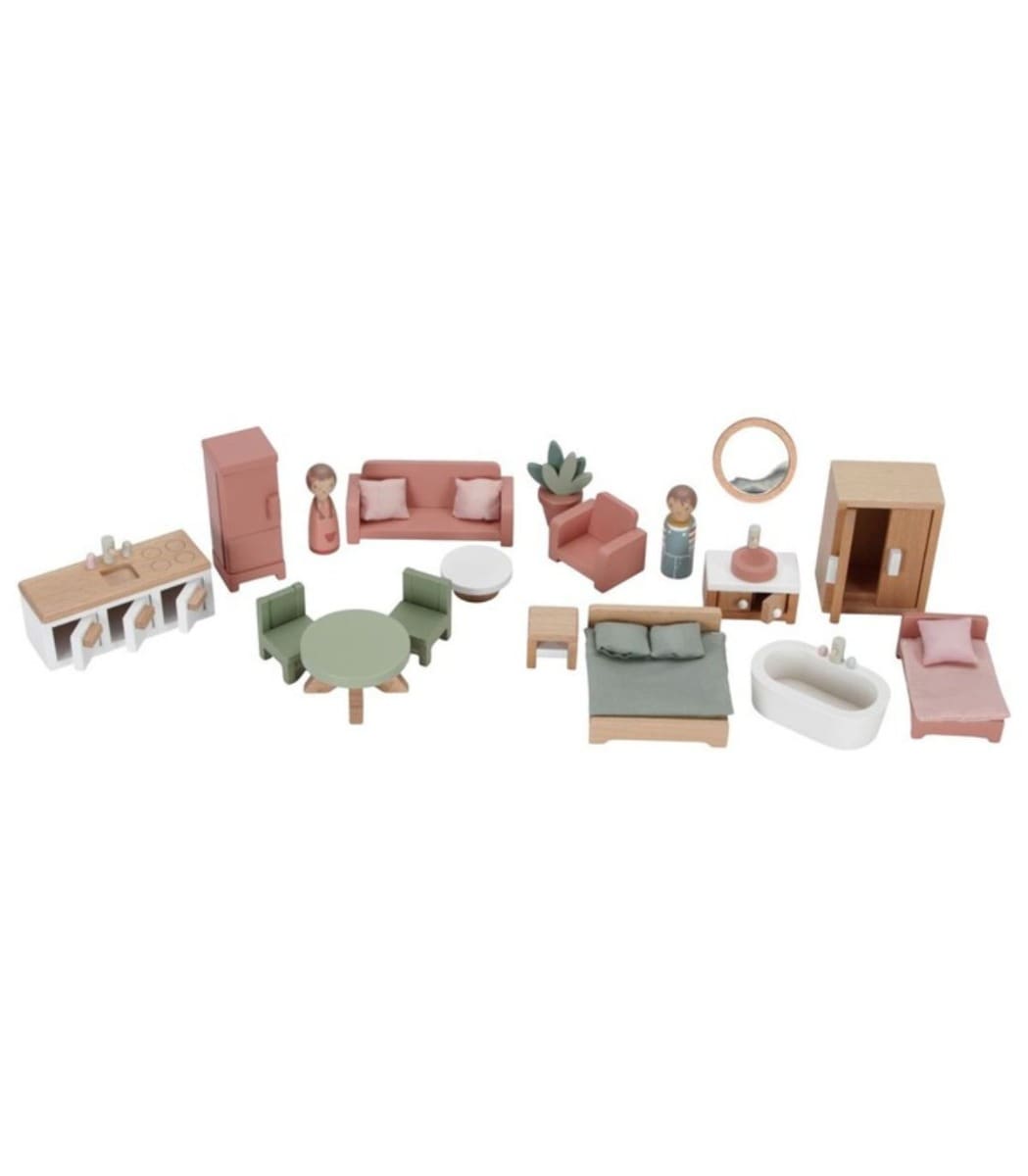 Kuća sadrži dnevni boravak, kuhinju, kupaonicu, spavaću sobu za mamu i tatu te dječju sobu. Svaka soba je prikladno opremljena namještajem i priborom. Ova kućica za lutke nudi sate igranja i može se dodatno proširiti dodatnim setovima pribora.