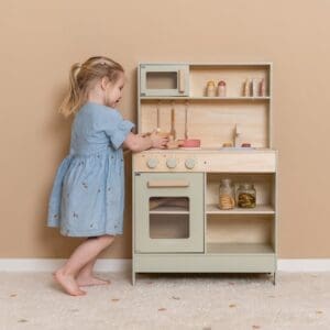 Vaš mali kuhar može kuhati, peći i pržiti u ovoj cjelovitoj Little Dutch drvenoj kuhinji. Kuhinja sadrži posuđe (lonac, tava, začini, ..), sudoper, pećnicu,…