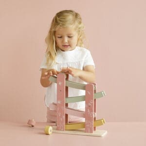 1, 2, 3, utrka! Djeca će se izvrsno provesti uz ovu drvenu stazu iz kolekcije Wild Flowers od Little Dutch-a. Ova igračka napravljena je od izdržljivog FSC drva i potiče dječju koordinaciju ruku i očiju.
