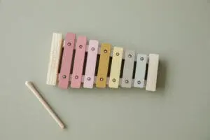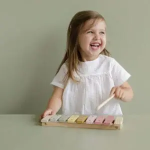 Drveni ksilofon u prelijepim bojama iz kolekcije Little Dutch, idealna igračka za razvoj motoričkih sposobnosti, uključena je jedna udaraljka.