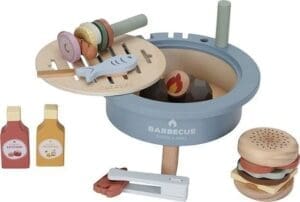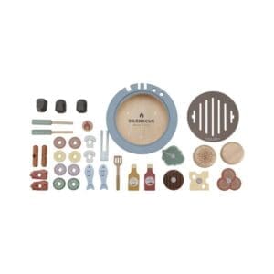 S ovim setom igračaka za roštiljanje imate sve alate pri ruci za oponašanje užitka prave zabave s roštiljem. Tu su hvataljke i lopatica i dva ražnjića. Podignite rešetku roštilja i napunite je komadićima drvenog ugljena da zagrijete roštilj. Izaberite povrće i proteine kako biste napravili ukusan ražnjić za svoje omiljene igračke, mamu i tatu ili braću i sestre.