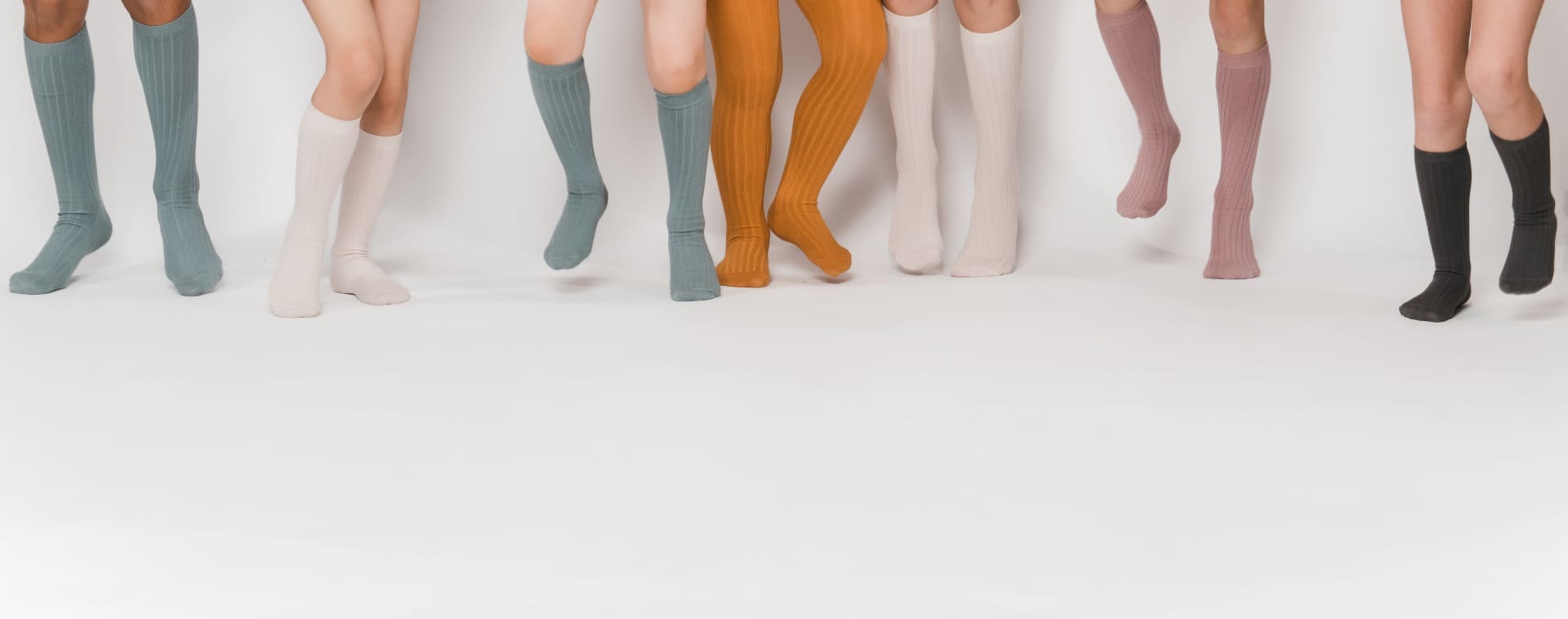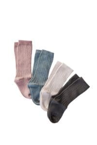 Rebraste čarape do koljena od organskog pamuka dostupne u četiri ekološke boje.