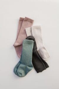 Rebraste čarape do koljena od organskog pamuka dostupne u četiri ekološke boje.