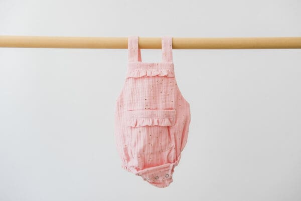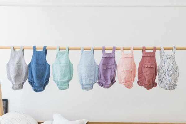 Lagan i nježan, poput druge kože, romper izrađen od mekog muslina. Drukeri između nogica praktični su za presvlačenje, može se nositi ljeti samostalno, ali i kad malo zahladi, s bodićem i čarapicama. Tregeri se križaju na leđima i zakopčavaju na gumbić, tako da ga nema potrebe navlačiti preko glave (znamo da maleni to baš i ne vole).