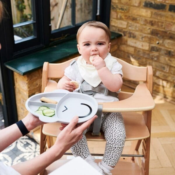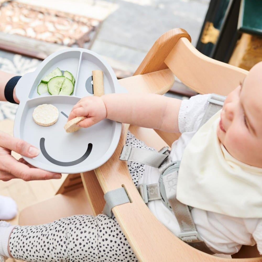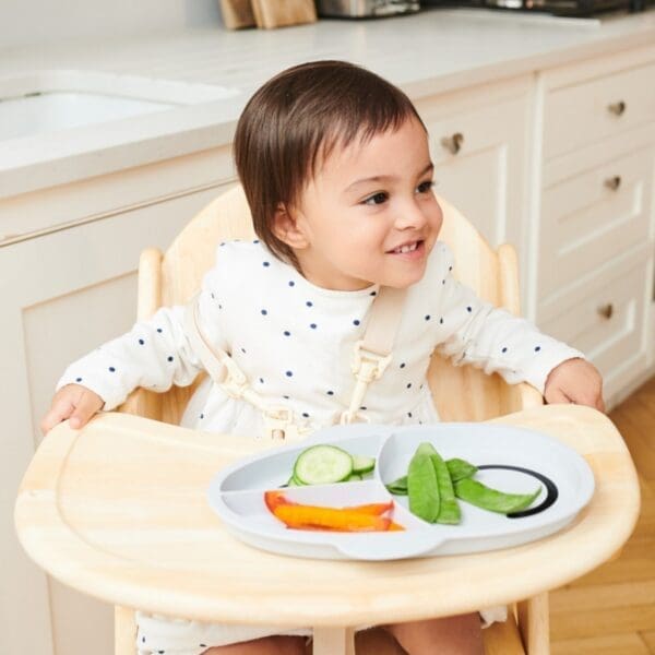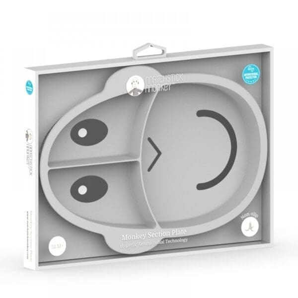 Dječji neklizajući silikonski tanjur Matchstick Monkey savršen je dodatak za posluživanje uravnoteženog obroka i odvajanje različitih tekstura i grupa namirnica. Maleni se može hraniti iz više dijelova tanjura, što potiče i razvija finu motoriku i koordinaciju oko-ruka. Razdjelna ploča izrađena je od silikona bez BPA i ftalata, a protuklizni materijal za držanje sprječava veće prolijevanje hrane. Može se prati u perilici posuđa i mikrovalnoj pećnici. Dječji podijeljeni silikonski tanjur dolazi u tri zabavne boje!