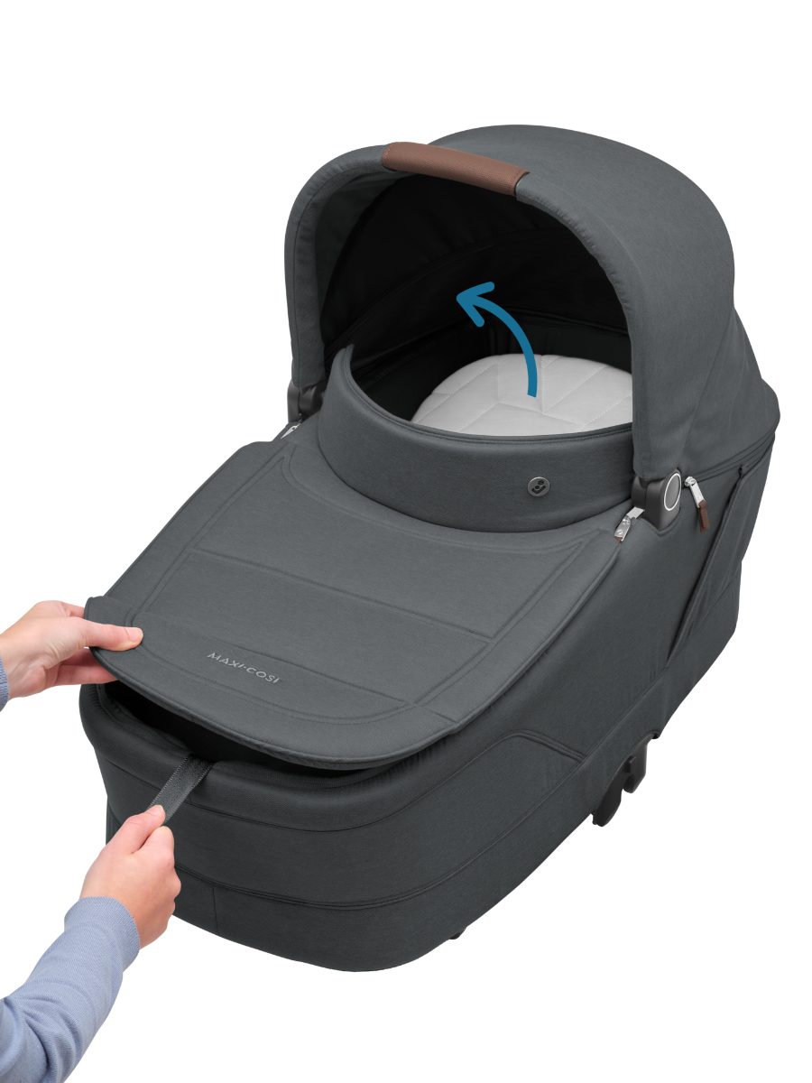 Jedinstvena SoothingSlope funkcija omogućuje lagani nagib košare kako bi se smanjio refluks i olakšala probava, što može biti posebno korisno nakon hranjenja. Veliki baldahin štiti od sunca i vjetra, stvarajući mirno i zaštićeno okruženje za spavanje.