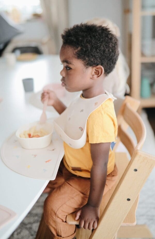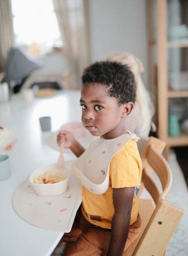Predivan podbradnik koji će zaštititi odjeću vaše bebe prilikom hranjenja. Dizajniran je u Švedskoj te je izrađen od silikona prikladnog za doticaj s hranom, bez BPA i bez ftalata.
