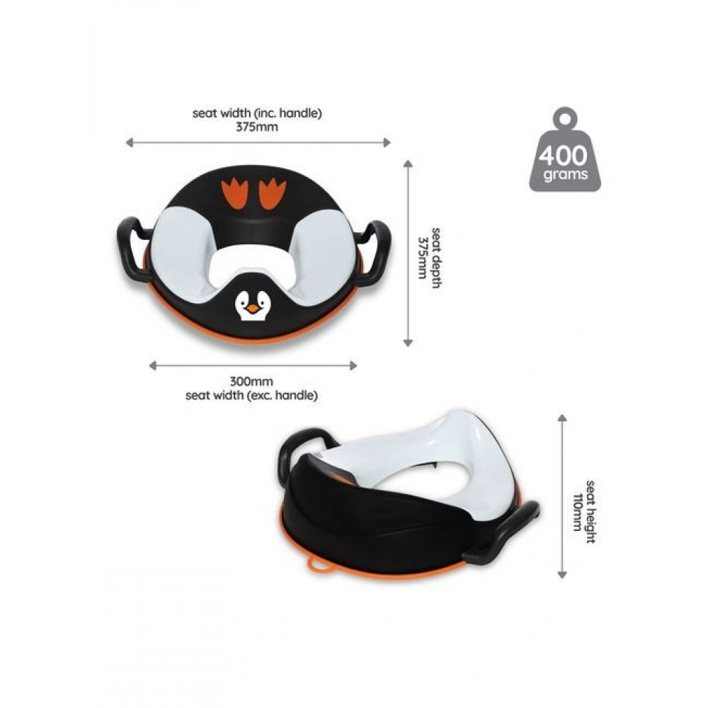 My Little Trainer Seat univerzalne je veličine te odgovara većini toaleta. Udoban je i siguran. Sa svake strane ima ručkice kako bi se dijete moglo primiti dok sjedi.