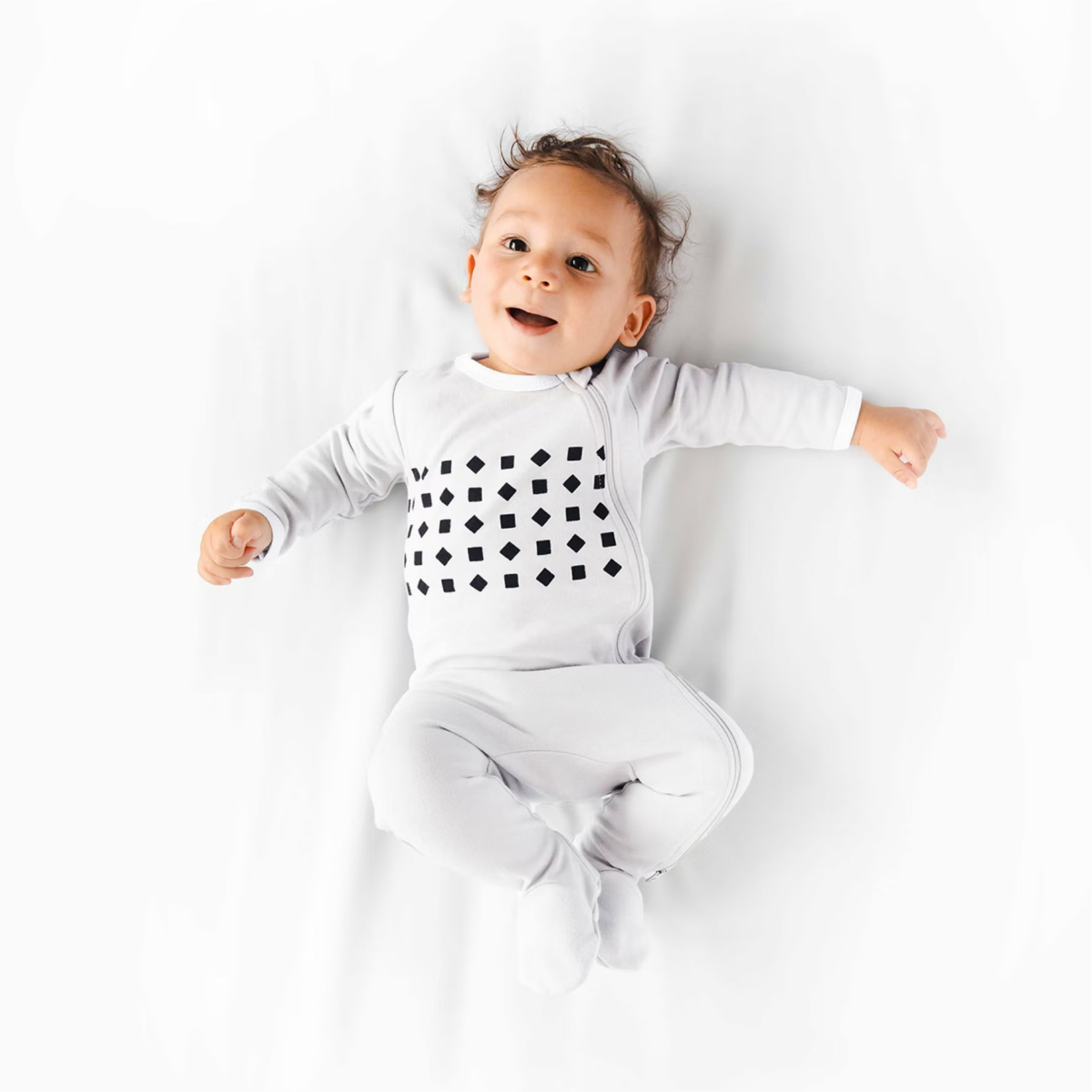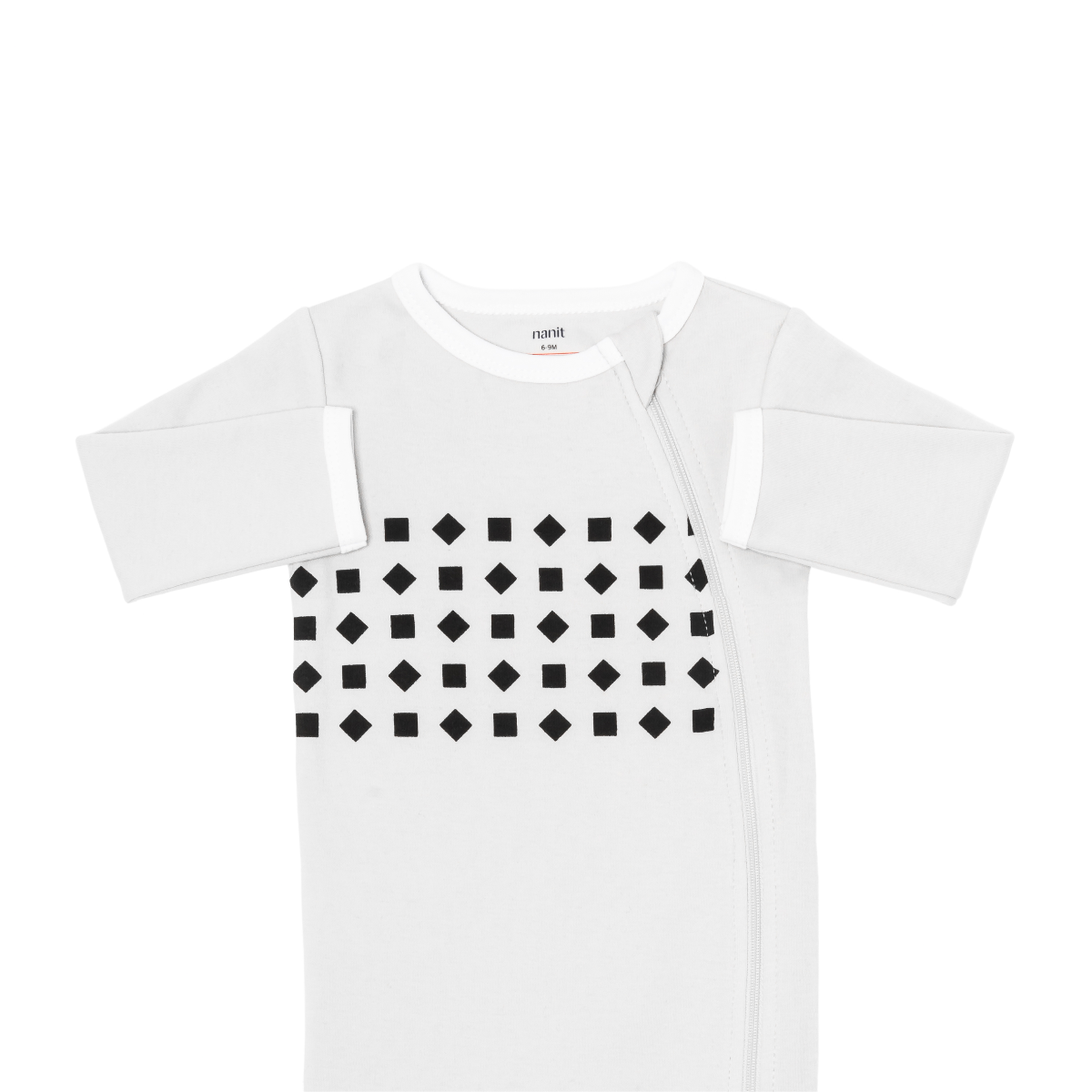 Prilagođeno dizajnirani uzorak na svim našim odjećama za disanje radi s patentiranom tehnologijom računalnog vida Nanit Pro kamere za sigurno otkrivanje pokreta disanja vaše bebe u bilo kojem položaju spavanja – bez ikakvih senzora, elektronike ili radara! – i šalje upozorenja u stvarnom vremenu. tvoj mali te treba.