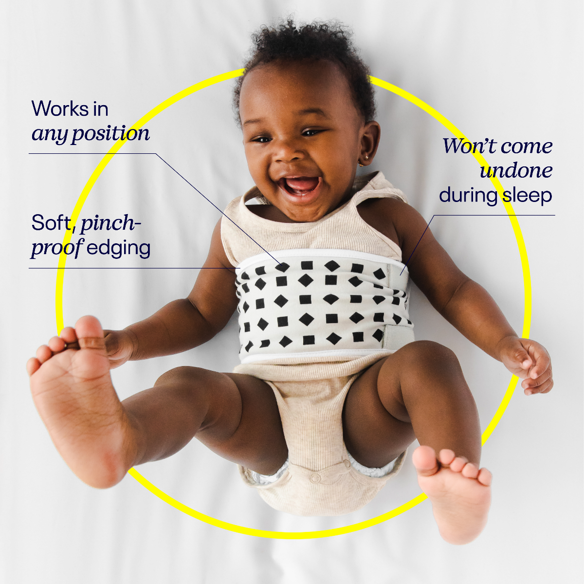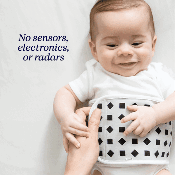 Prilagođeno dizajnirani uzorak na našoj traci za disanje radi s Pro kamerom (prodaje se zasebno) za sigurno i udobno otkrivanje pokreta disanja vaše bebe u gotovo svakom položaju spavanja – bez ikakvih senzora, elektronike ili radara! Koristeći patentiranu tehnologiju računalnog vida, Nanit prati udisaje u minuti (BPM) i brzo reagira na promjene slanjem upozorenja u stvarnom vremenu putem aplikacije i na kameru ako vas vaše dijete zatreba. Zamislite to kao nježnu ruku na bebinim prsima kada ne možete biti uz dječji krevet.