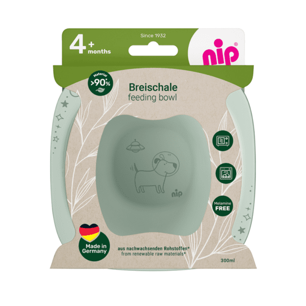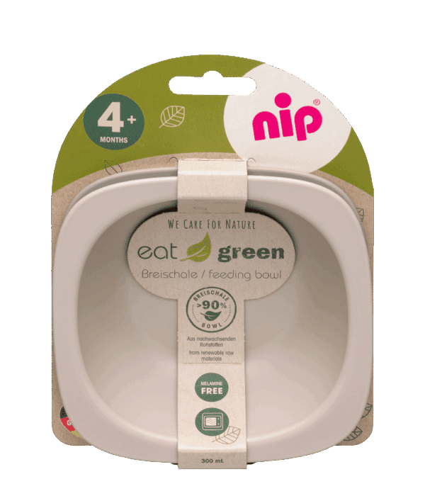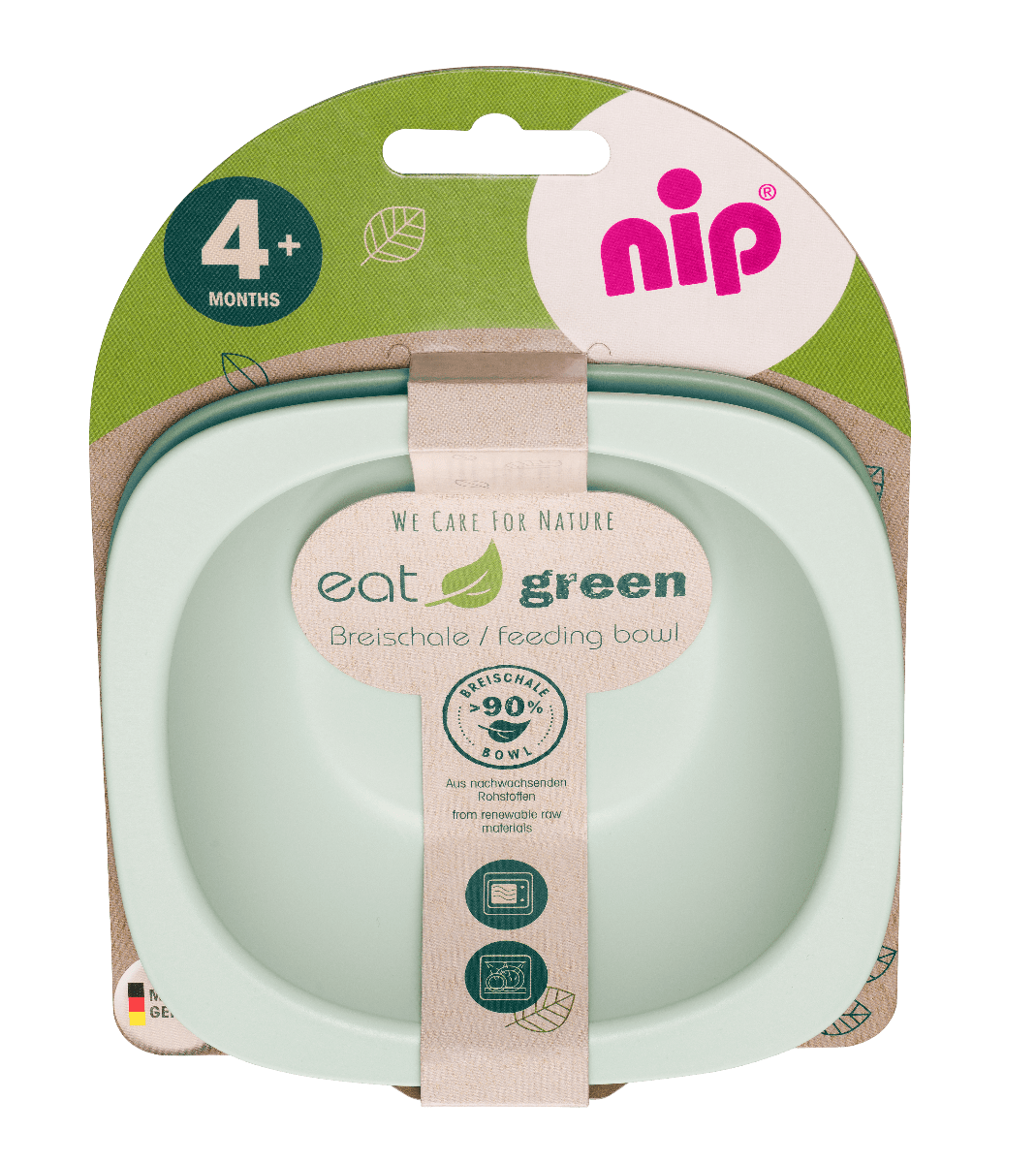 nip® Eat Green set od 2 zdjelice je praktičan i ekološki prihvatljiv set zdjelica dizajniran za prve obroke vaše bebe. Izrađen je od bio‑plastičnih materijala s više od 90 % obnovljivih sirovina, bez BPA, PVC‑a i melamina — sigurno za bebu i okoliš.