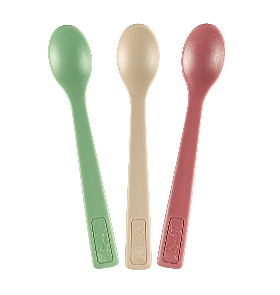 Eat Green žlice za hranjenje marke nip® izrađene su od bioplastike s udjelom obnovljivih sirovina (šećerna trska)* od >94 %. Ambalaža Green održiva je i neškodljiva za okoliš, papir se sastoji od više od 90 % recikliranog kartona. Eat Green set od 3 žlice posebno su meke i zaobljene čime štite osjetljivo nepce bebe i prikladne su za bebe od 4 mjeseca. Tanak oblik žlice savršeno pristaje u bebina usta. Decentan dizajn nježnih zemljanih tonova posebno je popularan i savršeno se prilagođava aktualnim trendovima. Čvrsti materijal ne sadrži BPA (prema zakonu) i PVC. Može se oprati u perilici posuđa. Kvaliteta “Made in Germany“.
