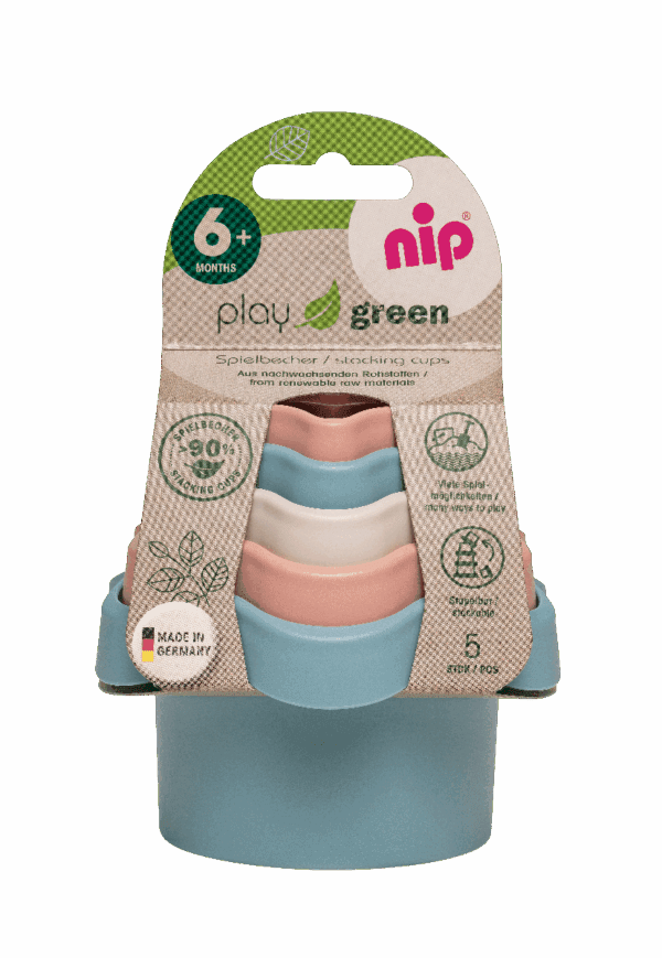 nip® Play Green čašice za slaganje (5 kom) su zabavna i edukativna igračka za najmlađe, izrađena u sklopu Green Line održive serije proizvoda. Ove šarene čašice potiču dijete na igru, učenje i razvoj motoričkih vještina kroz slaganje, nagrtanje i različite igre s vodom ili pijeskom.