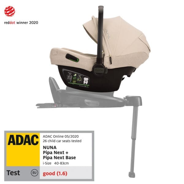 Jaje Nuna® Pipa™ Next ispunjava sigurnosnu i-Size normu ECE R129/00. Pouzdanost na svakom putovanju osigurat će i robusni okvir jaja, 3-točkovni sigurnosni pojas bez zatezanja s mekim oblogama u području ramena i donja sidrišta te automatski SIP sustav koji omogućuje dodatnu bočnu zaštitu u slučaju bočnog sudara. Udobnost i zaštitu omogućuju i patentirana memorijska pjena Taylor Tech™ te potporni jastuk za glavu, leđa i lumbalni dio kralješnice. Nuna® Pipa™ Next ima podesiv naslon za glavu koji omogućuje prilagođavanje sjedalice djetetovoj visini u 7 mogućih pozicija. Visina se može podesiti jednom rukom.