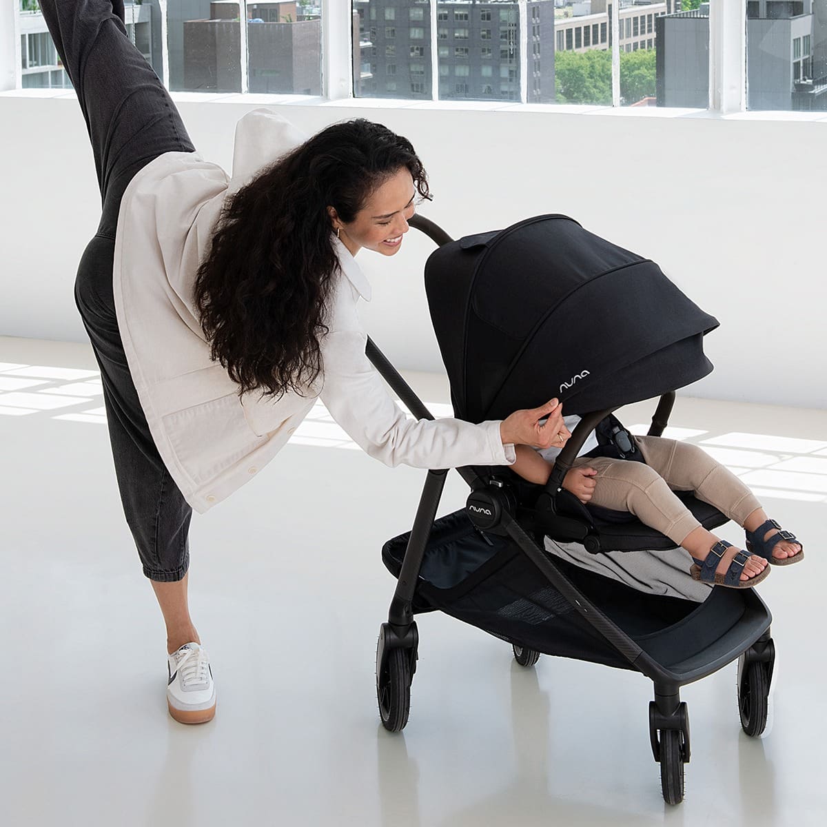 Izvanredna značajka inovativnih Nuna® Swiv™ kolica je rotacija od 360° na sva 4 kotača. Rotacija se aktivira brzo i lako dostupnim gumbom koji se nalazi na upravljaču kolica. Gumb aktivira okretanje kotača u bilo kojem smjeru, što znatno olakšava upravljanje kolica. Kada gumb nije aktiviran, kolica Nuna® Swiv™ možete koristiti na poznati način (bez okretanja u svim smjerovima, bez “klizanja”). Kolica su prikladna za korištenje od rođenja bebe do težine od 22 kg, odnosno do otprilike 4. godine starosti djeteta. Kolica se također mogu kombinirati s košarom za novorđenče Nuna® Lytl™ ili Nuna® Cari™ Next. Istodobno, na konstrukciju kolica možete postaviti bilo koju Nuna® autosjedalicu (jaje). Kolica omogućavaju izuzetno jednostavno i kompaktno sklapanje jednom rukom.