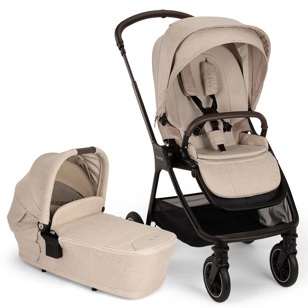 U kompletu dobivate i Nuna® košaru za novorođenče Lytl™ Riveted. Njena velika prednost je kompaktno sklapanje, što omogućava jednostavno pohranjivanje kolica i košare kod kuće ili u automobilu. S težinom od samo 3,5 kg i praktičnom ručkom na vrhu, olakšava transport i još jednostavnije postavljanje na okvir kolica. Nezamjenjiva magnetska zavjesica Dream drape™ pruža dodatnu zaštitu od sunca, hladnoće, vjetra i drugih vanjskih utjecaja. Krov s produžetkom i UPF 50+ UV zaštitom izuzetno je prozračan i izrađen od vodoodbojne tkanine. Na stražnjoj strani košare nalaze se dva dodatna prozora s mrežastom tkaninom koja omogućuju izvrsnu prozračnost. Na dnu košare nalaze se 4 noge koje omogućavaju da košara bude blago podignuta od tla, čak i kada stoji na podu. To omogućuje dodatnu sigurnost i zaštitu robe.