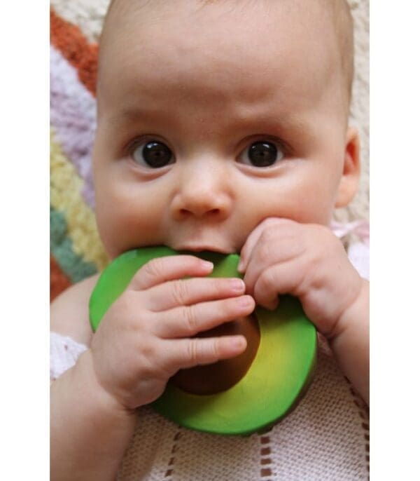 Oli & Carol žvakalica avokado Arnold je igračka za bebu u obliku voća koja olakšava vašem mališanu period nicanja zubi! Uvedite vašu bebu u zdrave prehrambene navike.