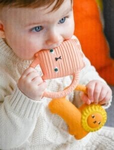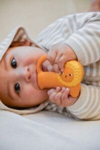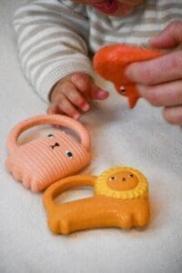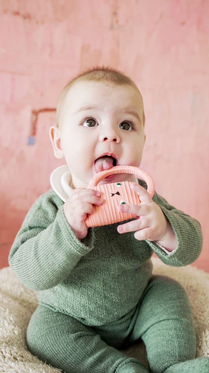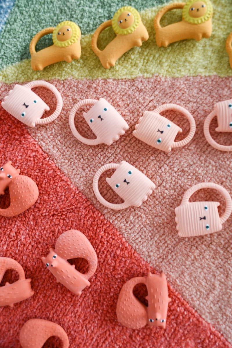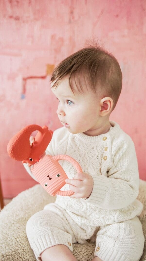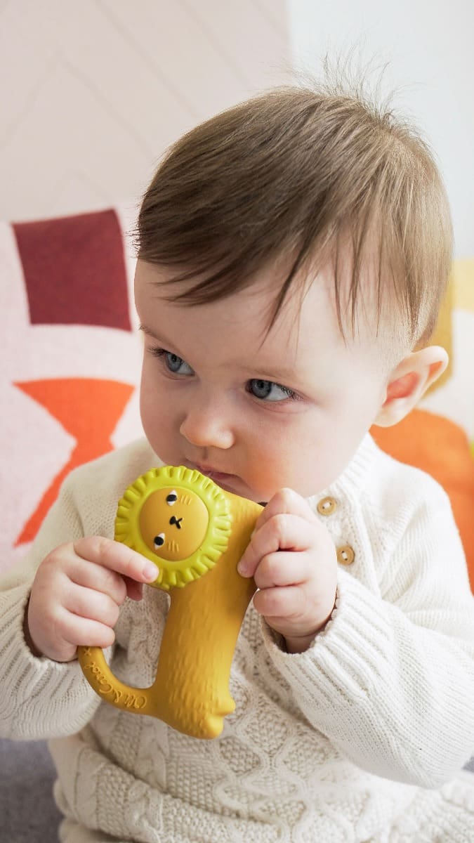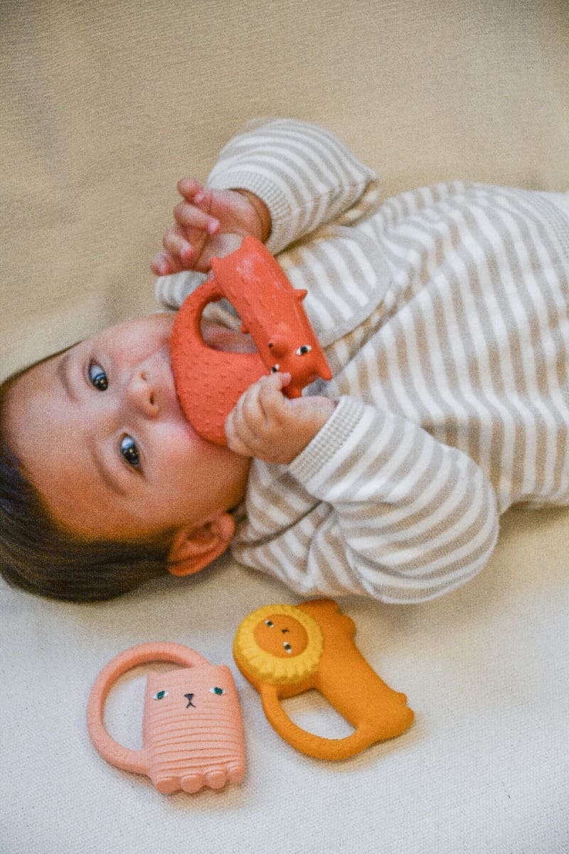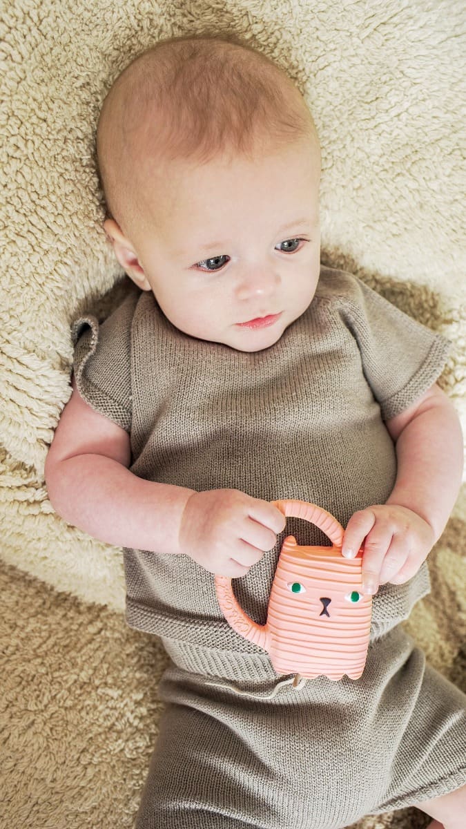 Ginge je mačka kako je vidi poznata dizajnerica Donna Wilson koja je u suradnji sa sestrama Oli&Carol osmislila novu gricku za bebe. Ovo je gumena igračka idealna za žvakanje i grickanje kada krenu izbijati zubići. Namijenjena je i za osjetilnu igru, a služi i kao igračka pri kupanju. Malene desni obožavaju teksturu kaučuka. Mekana i jednostavna za držanje u bebinim malenim ručicama posebno zahvaljujući pametno dizajniranom repu :)).