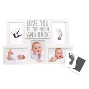 Ovaj moderni bijeli, drveni višeslojni okvir uključuje sve što vam je potrebno za izradu vlastitog suvenira sa sitnim otiscima vašeg mališana.