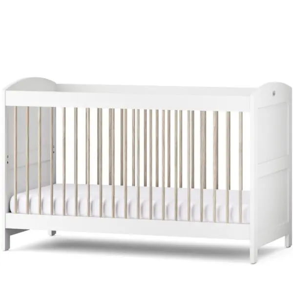 S tri podesive visine podnice, krevetić se lako može spuštati kako vaše dijete počne okretati, sjediti i stajati. Kada preraste krevetić, lako se pretvara u dječji krevetić koristeći isti madrac, za godine korištenja. Završna obrada u bezvremenskoj bijeloj boji s detaljima od prirodnog jasena omogućuje da se krevetić Valencia savršeno uklopi u svaki dječji prostor.