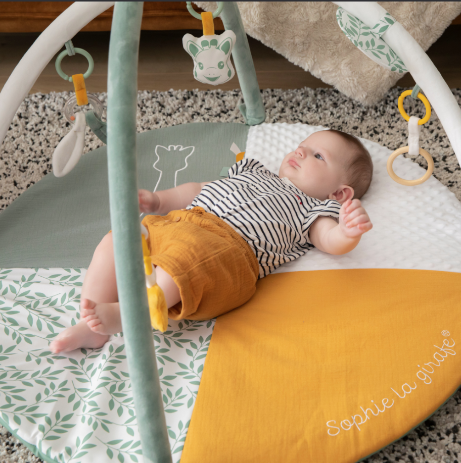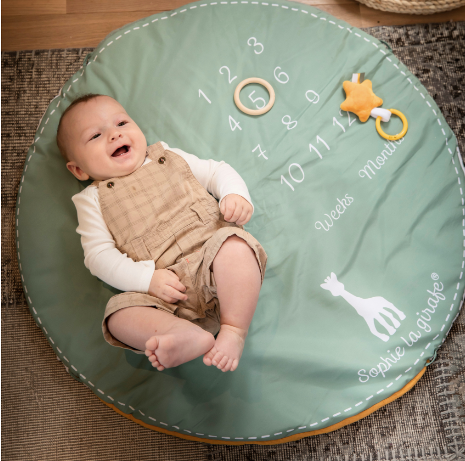Lukovi su podesivi pa možete promijeniti položaj aktivnosti što će bebu potaknuti na okretanje glave i mijenjanje položaja. Druga strana podloge idealna je za fotografiranje i praćenje bebinog rasta.