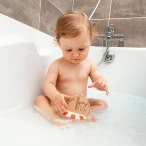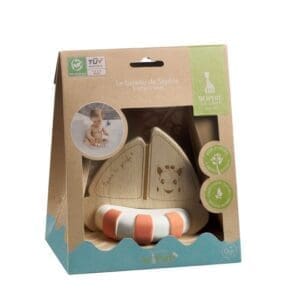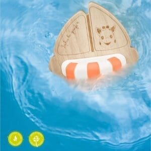 Zbog eko-odgovornog pristupa odlučili smo dati drugi život kaučukovcu. Ovo meko i otporno drvo, kojem se ne dodaju kemijski tretmani, savršeno se kombinira s našom prirodnom gumom kako bi bebi pružilo prekrasne trenutke igre Čamac pluta na vodi i sa svojom uklonjivom i teksturiranom plutačom od 100% prirodne gume za žvakanje, zajamčena je zabava u kupanju bebe! Praktičan, njegov oblik lako hvata male ruke. Higijenski, voda ne smije ući u igračku, kako bi se izbjegle bakterije ili plijesan.