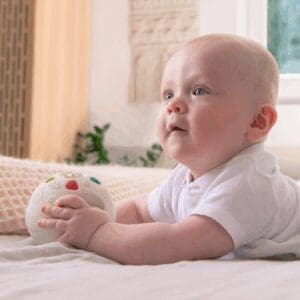 Svijetle boje, male rupice i mnoštvo tekstura (zaobljeni vrhovi, pruge, zvjezdice, rešetka…) Razvija bebinu svijest i znatiželju. Lagan i ergonomičan, beba ga može lako uhvatiti zahvaljujući dvjema integriranim ručkama.
