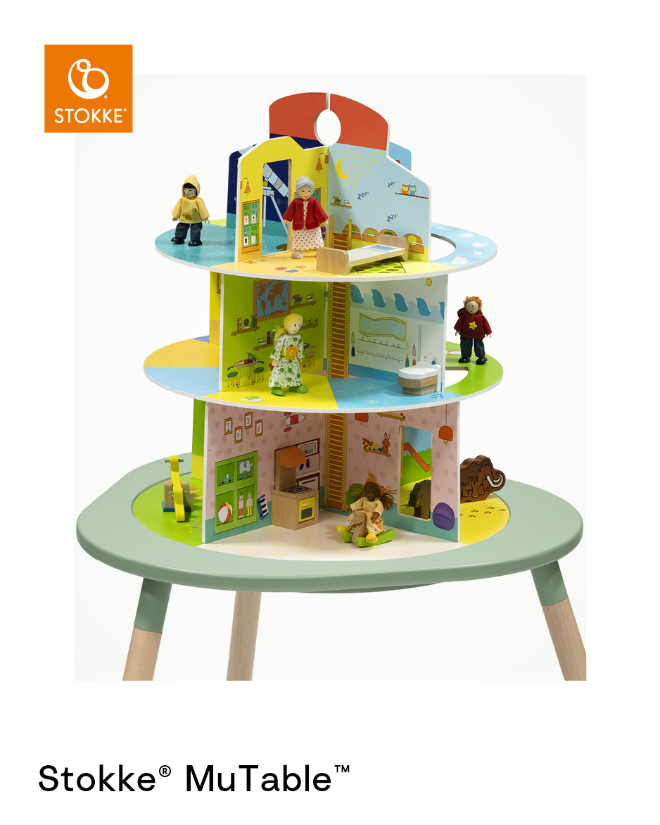 Dopustite svom nadobudnom dizajneru da svoju kućicu za igru učini domom uz Stokke® MuTable™ igračke. Set uključuje 10 prekrasnih, šarenih komada raznih igračaka za učenje s namještajem, životinjama, helikopterom i još mnogo toga. Vaše dijete može upotrijebiti svoju maštu kako bi napravilo mjesta za sve i pripremilo scenu za sve uzbudljive priče koje će ispričati. Stvaranje scenarija koji nalikuju stvarnom životu potiče djecu da razgovaraju o mislima i osjećajima. Imaginarne igre pomažu djeci da shvate svoju okolinu i potiču njihovu kreativnost. Ovo također pomaže djeci u razvoju društvenih vještina, rješavanja problema, organizacijskih vještina i, naravno, finih motoričkih vještina. Uparite Stokke® MuTable™ igračke sa Stokke® MuTable™ Play House za sate igranja i učenja.
