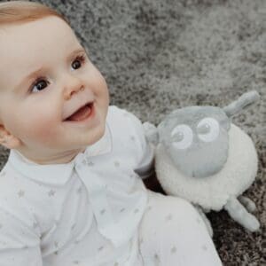 Uz to, pomoći će vam i ljepljivi naramenice (čičak), pomoću kojih možete sigurno postaviti igračku na krevetić, ponijeti je sa sobom u šetnju, u automobilu, … Dakle, ovčica Ewan će uvijek biti s vama i vašim djetetom.