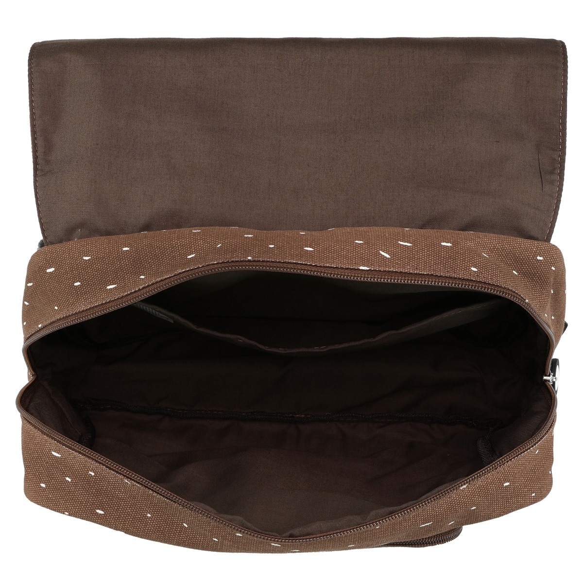Torba ima jedan veliki pretinac i mali prednji džep koji će omogućiti brz pristup važnim stvarima, a obje se zatvaraju patentnim zatvaračem. Također, ima podesive naramenice i remen na prsima koji će spriječiti klizanje remena s ramena. Kratka ručka, koja je ušivena s gornje strane, omogućuje vam da je objesite bilo gdje, a unutra ćete pronaći i zakrpu na kojoj možete napisati djetetovo ime.