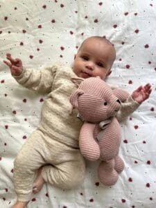 Mali Medo je slatka i mekana pamučna pletena igračka od organskog pamuka s umirujućom glazbom.
